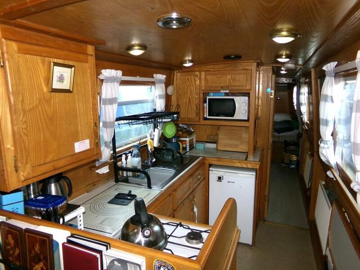 The galley area is well equipped with oven and hob, sink/drainer, under counter fridge, microwave and cupboard space.
